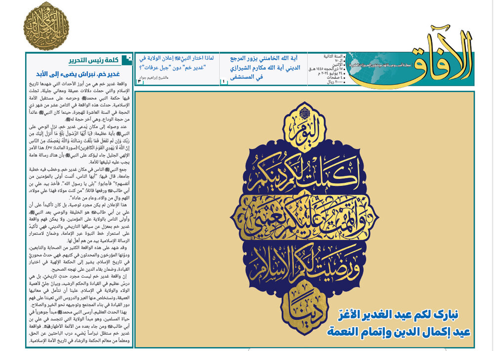 2. تقرير/ المرجع الشيخ النجفي يؤكد أهمية إقامة الاحتفالات والأفراح بعيد الغدير الأغر