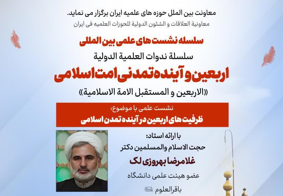 الحضارة هي مجموعة بشرية تتوافر فيها خصائص أساسية، من قبيل: الرؤية الكونية الشاملة، الانسجام الداخلي، القدرة على الجذب والتنظيم الشعبي، الشمولية والامتداد، إضافةً إلى قابلية التحديث والإبداع. وهذه الخصائص تتجلى بوضوح في الحضارة الإسلامية. لقد كان نهضة أبي عبد الله الحسين عليه السلام في النصف الثاني من القرن الأول الهجري محاولةً لصيانة أصالة الإسلام وإحيائه؛ ومن هنا وُصف ـ بحسب الحديث النبوي الشريف (ص) ـ بأنّه مصباح الهدى وسفينة النجاة وقد كُتبت هذه الصفة على يمين عرش الله تعالى.