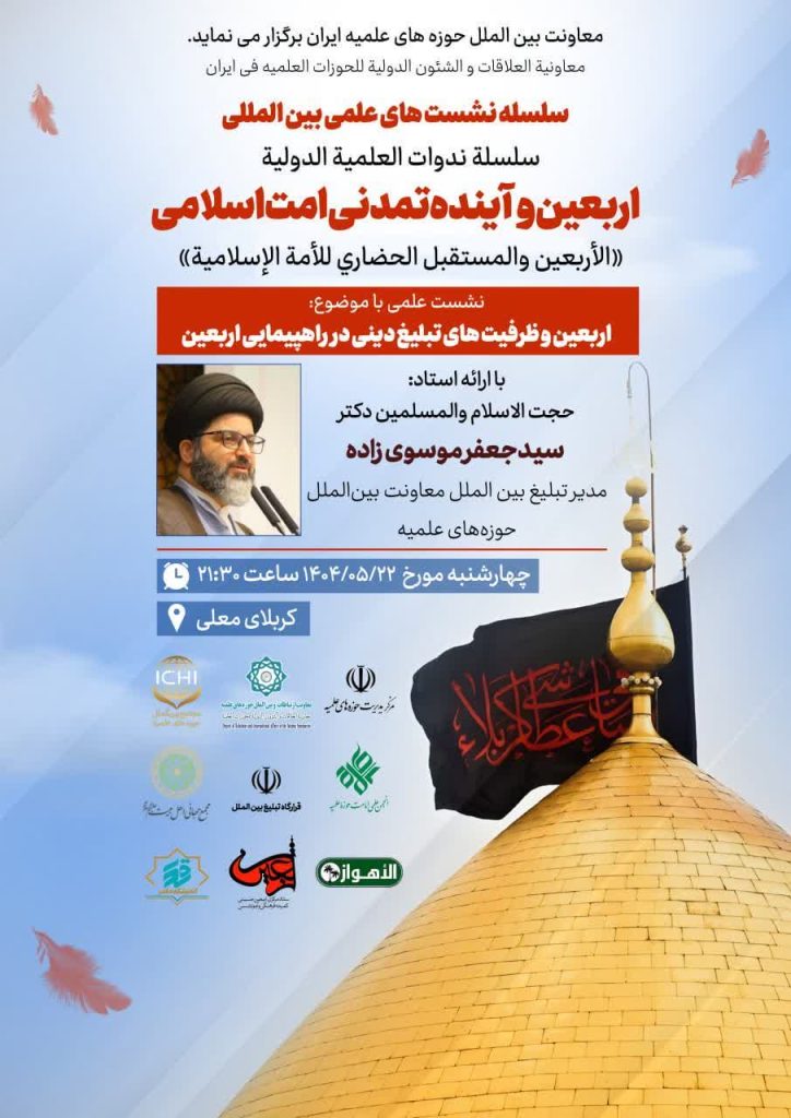 نظمت معاونت الشؤون الدولية للحوْزات العلمية في إيران، بالتعاون مع باقي المؤسسات الحوزوية، سلسلة من اللقاءات العلمية الدولية بعنوان «الأربعين والحضارة الحسينية» خلال أيام الأربعين لعام ۱۴۰۴. وفي هذا الإطار، عُقد لقاء بعنوان «الأربعين وإمكانات الدعوة الدينية في مسيرة الأربعين» قدمه الأستاذ حجت الإسلام والمسلمین الدكتور سيد جعفر موسوي زاده، مدير قسم الدعوة الدولية في معاونت الشؤون الدولية للحوْزات العلمية، وسيُقدَّم فيما يلي تفصيل هذا اللقاء.