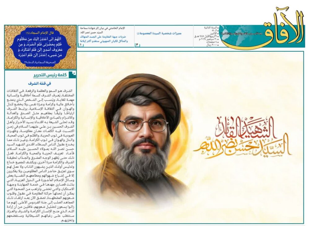 - بیان سماحة آیة السیستاني و آیة الله خامنئي حول استشهاد السید حسن نصر الله رحمه الله