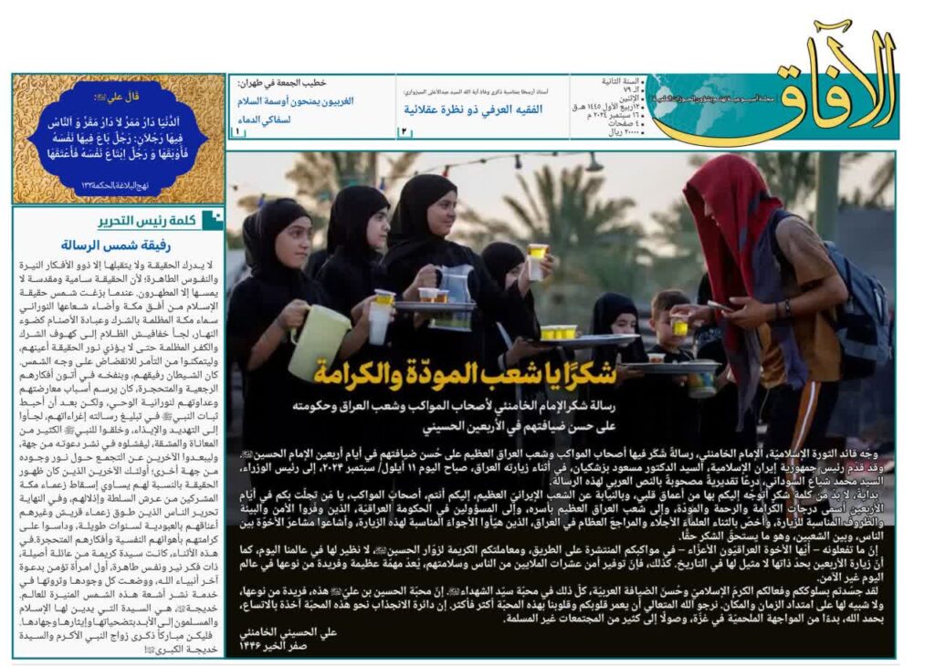 - رسالة شکر لسماحة آیة الله الخامنئي لأصحاب المواکب وشعب العراق وحکومته