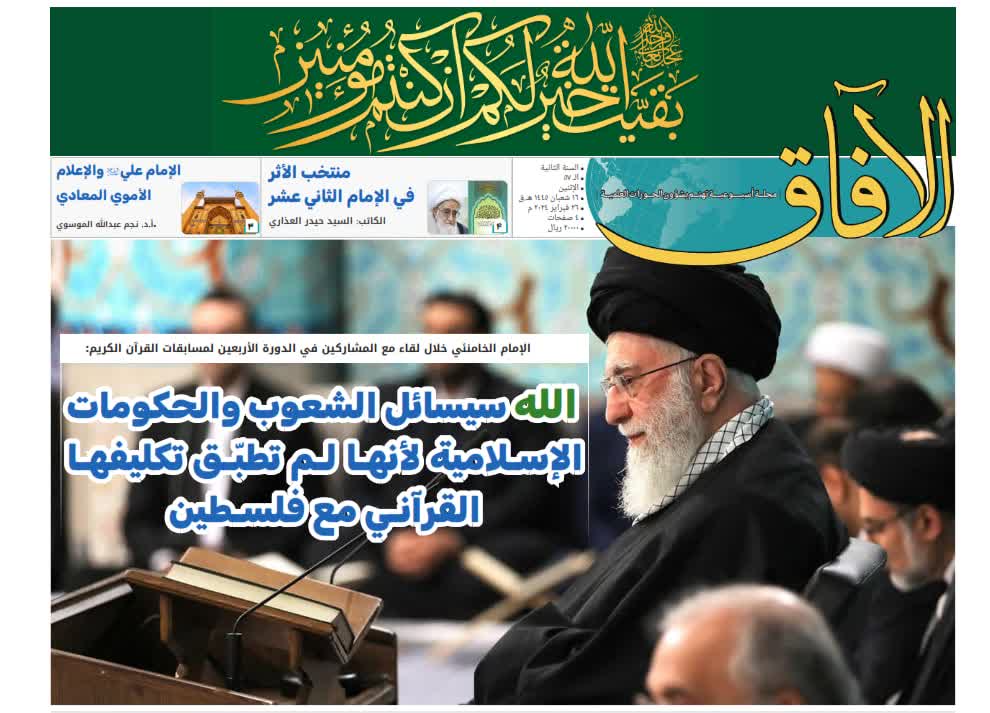 - الإمام الخامنئي: الله سیسائل الشعوب والحکومات الإسلامیة لأنها لم تطبق تکلیفها القرآني مع فلسطین