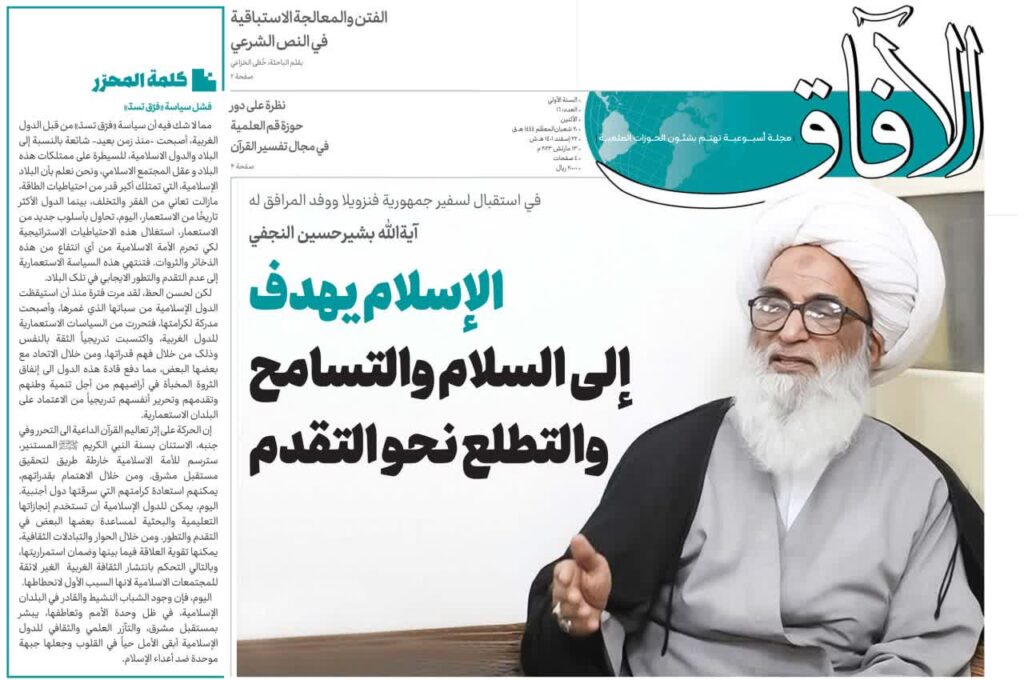 قد تم إصدار العدد السادس عشر من مجلة «الآفاق» المعنیة بشؤون الحوزات العلمیة في المحاور التالیة: