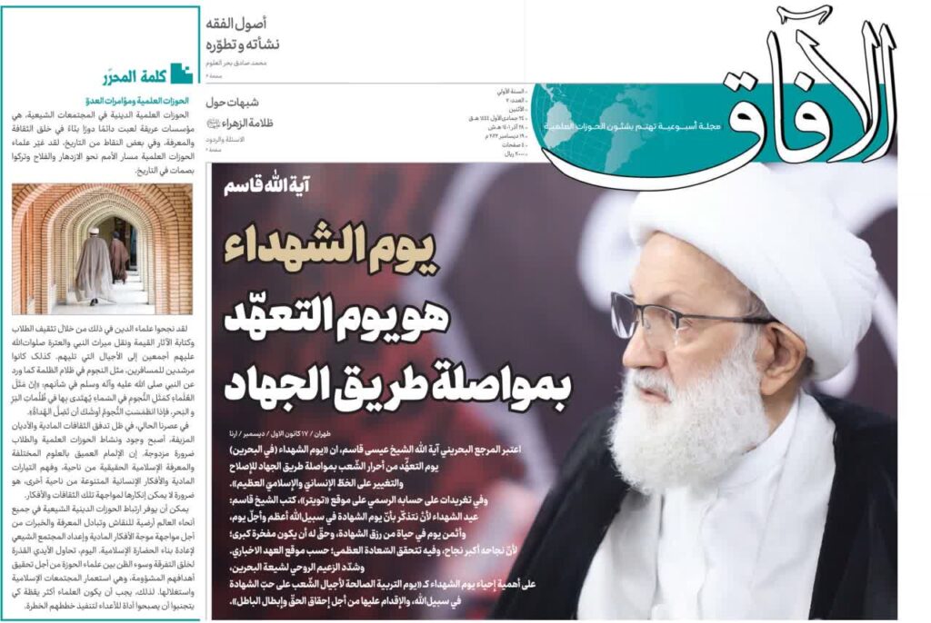 تم إصدار العدد السابع من أسبوعیة «الآفاق» المعنیة بشؤون الحوزات العلمیة في المحاور التالیة: