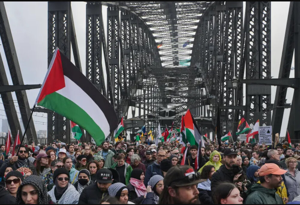 وكان منظر المتظاهرين وهم يعبرون جسر ميناء سيدني مهيبا، حيث تحدوا صعوبة الطقس من أمطار غزيرة ورياح عاتية للاحتجاج على العمليات العسكرية الإسرائيلية في قطاع غزة ولفت الانتباه إلى الأزمة الإنسانية هناك.