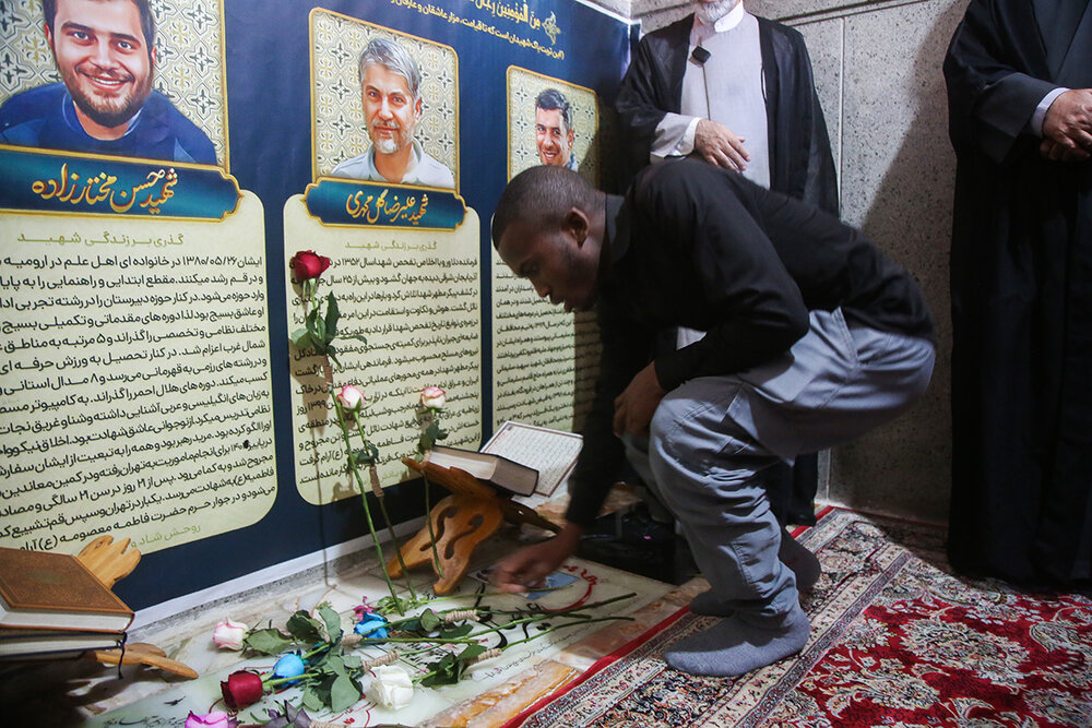 تقریر مصور | طلاب غير إيرانيين يؤدون التحية للشهداء المدفونين في مرقد السيدة فاطمة المعصومة (ع)