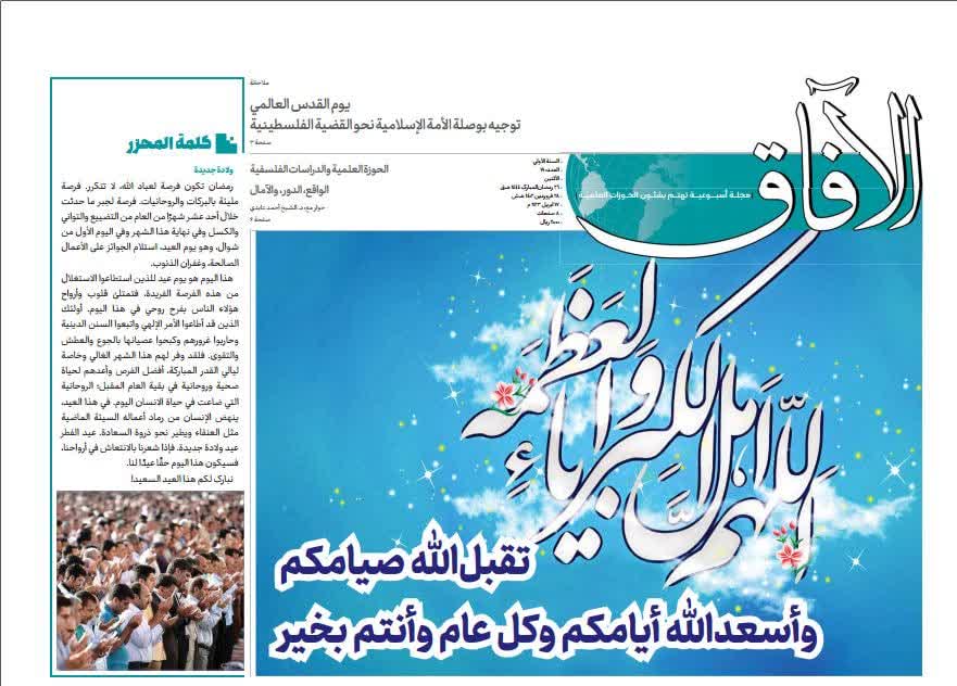 قد تم إصدار العدد التاسع عشر من مجلة «الآفاق» الأسبوعیة المعتنیة بشؤون الحوزات العلمیة في المحاور التالیة: