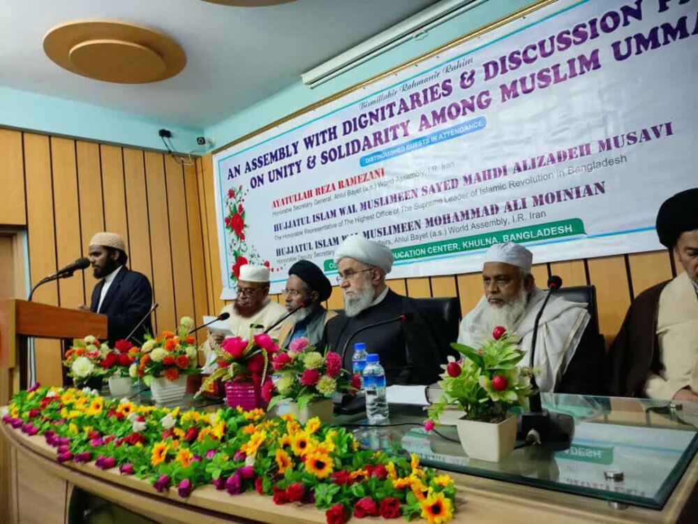 در این نشست که در تالار حوزه علمیه المرکز دراسات الاسلامیه برگزار شد، حجتالاسلام والمسلمین محمدعلی معینیان معاون بینالملل مجمع جهانی اهلبیت(ع)، حجت الاسلام و المسلمین سید مهدی علیزاده موسوی نماینده دفتر ارتباطات بین الملل مقام معظم رهبری در بنگلادش، حجت الاسلام و المسلمین ابراهیم خلیل رضوی رئیس شورای علمای شیعه بنگلادش و علماء اهل سنت حضور داشتند.