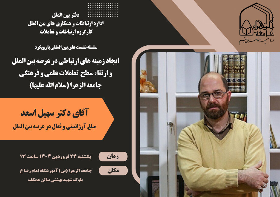 نخستین نشست از سلسله‌نشست‌های بین المللی با حضور سهیل اسعد از سوی اداره ارتباطات و همکاری های دفتر بین الملل جامعه الزهرا سلام‌الله‌علیها برگزار شد.