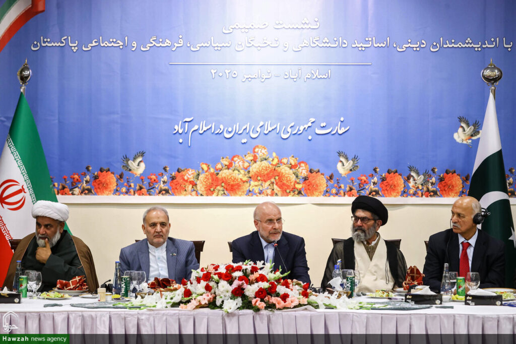 گزارش تصویری | نشست صمیمی رئیس مجلس با اندیشمندان دینی، اساتید دانشگاه و نخبگان سیاسی، فرهنگی و اجتماعی پاکستان – اسلامآباد